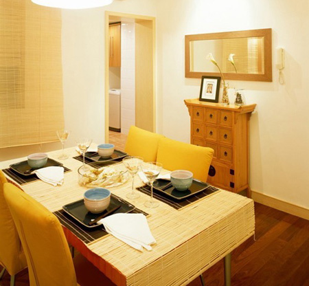 就餐时,人坐着还需要一点空档。同时,就功能而言,还要求餐厅的空间敞亮一些。如何在装潢中使餐厅显得气派敞亮呢?灯光的营造、家具的形态、色彩的渲染、器皿的匹配等,都是不可缺少的。但主要还是灯光设计与餐台的构建。要还是灯光设计与餐台的构建。